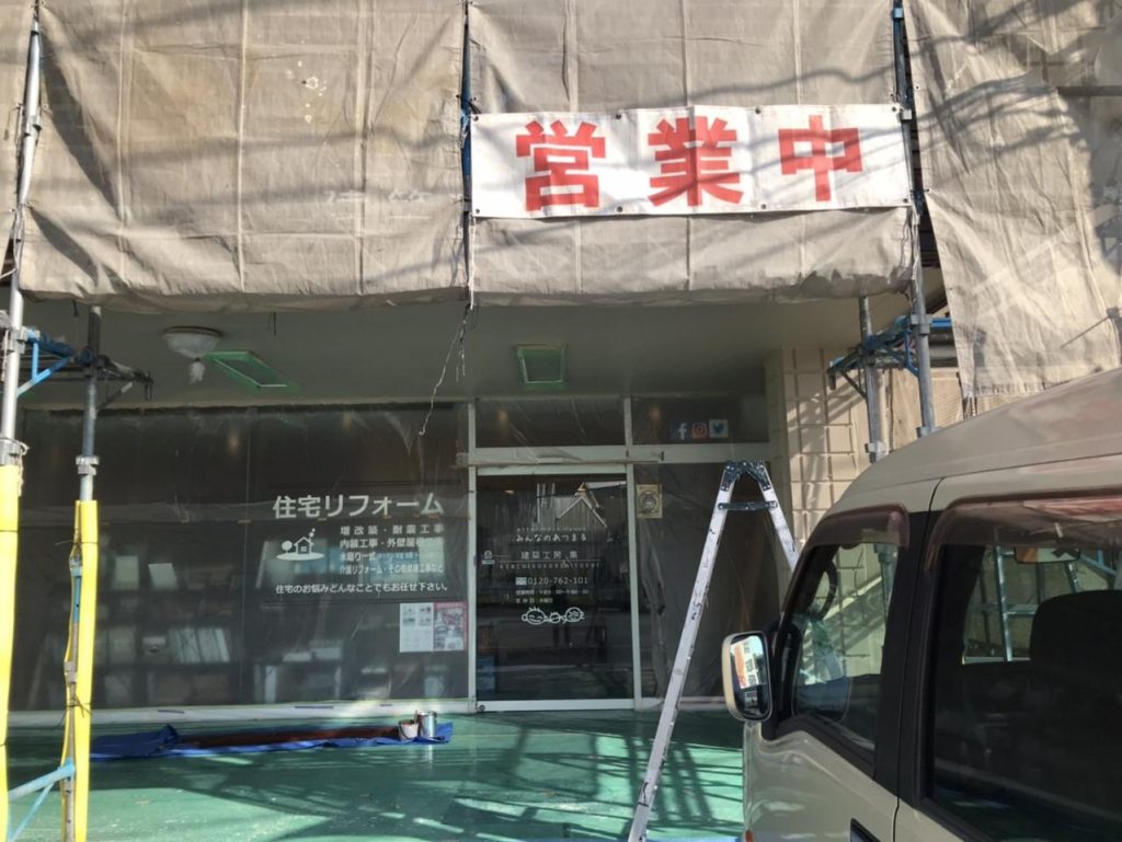 現在、集ショールムの入っている建物は外壁塗装中です。 もちろん、通常通り営業しております。 車は停めにくいですが、ショウルームの目の前にお願いします。 塗装が気になるというお客様には、敷地外の駐車場をご用意しております。 ちょっと離れていますが、職員がご案内します。お申し付けください。