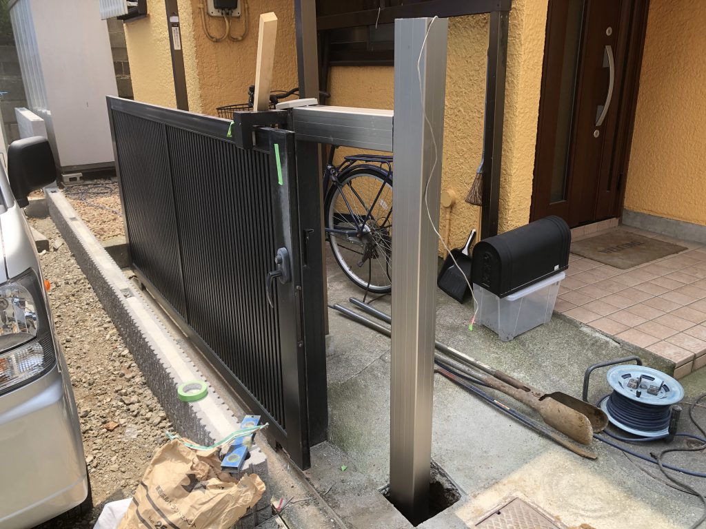 門扉の柱に付いていたインターホンをポストの台を利用して、配線を露出することなく交換移設しました。