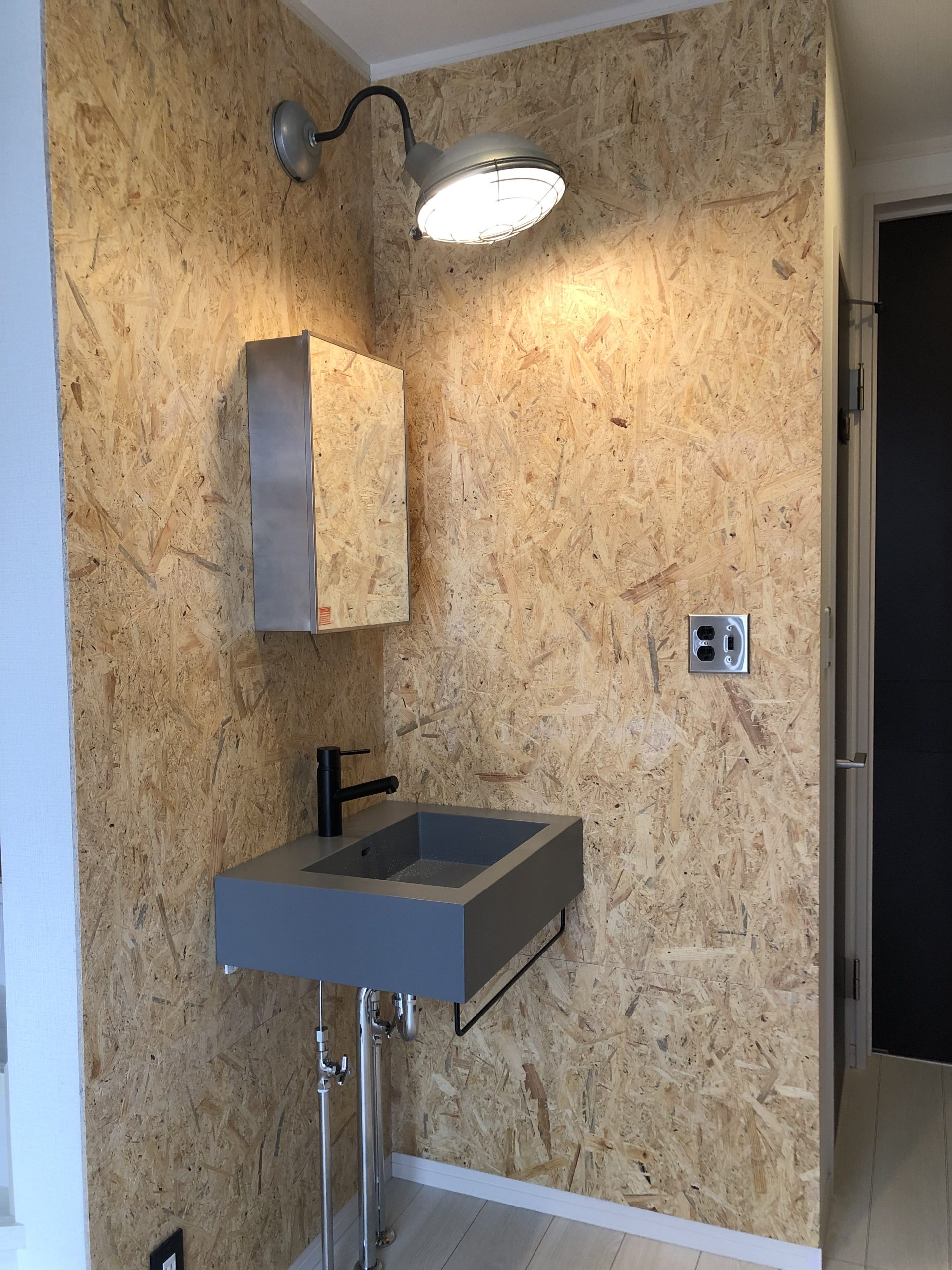 コロナ禍で、お客様やお子さんの友達が手を洗う時、 台所の水栓を利用せざるを得なく、手洗器を設置するに至りました。 施工前 下地補強 OSBボード貼 器具付 施工後 サンワカンパニー製手洗器